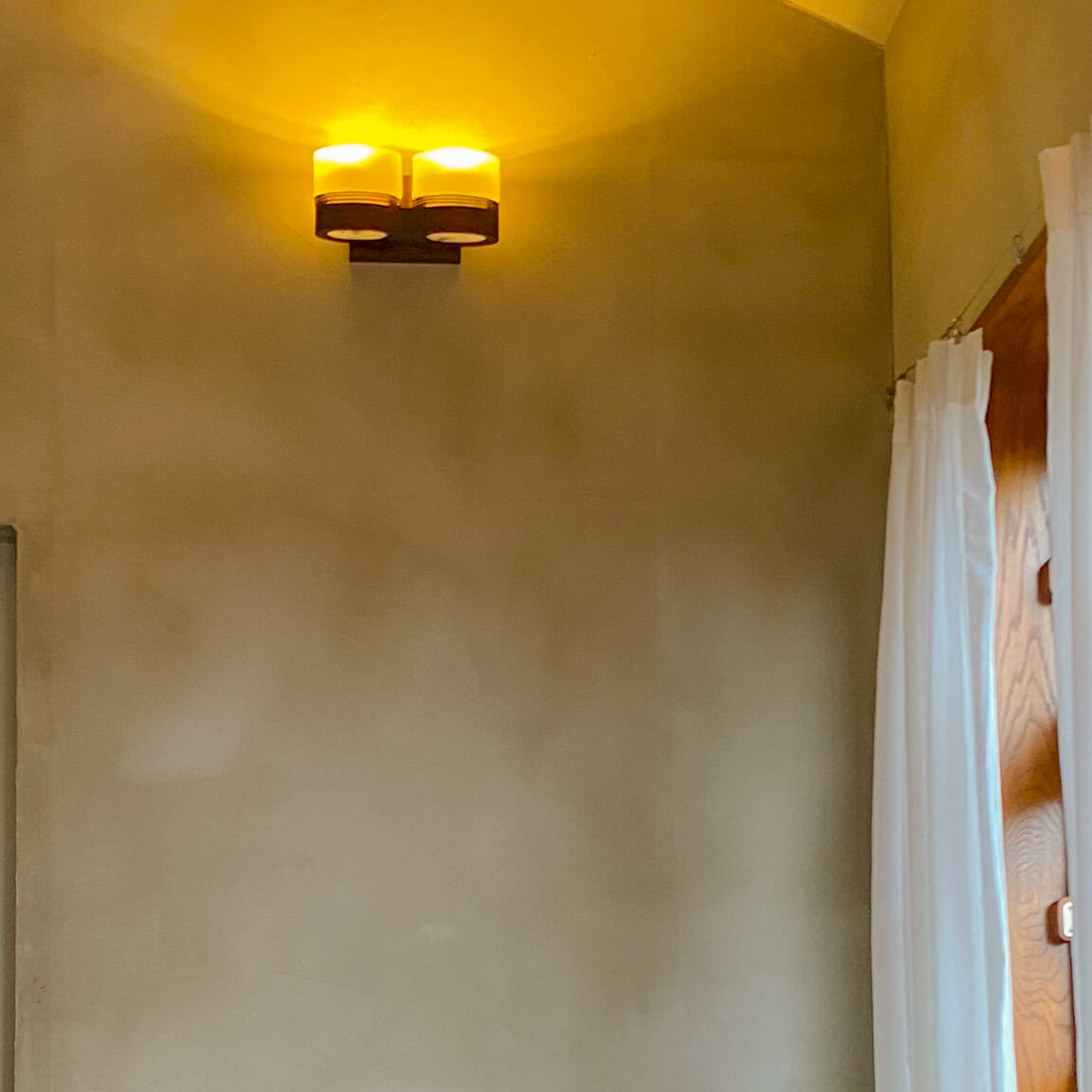 나무와 밝은 톤의 벽으로 따뜻한 분위기의 실내 인테리어