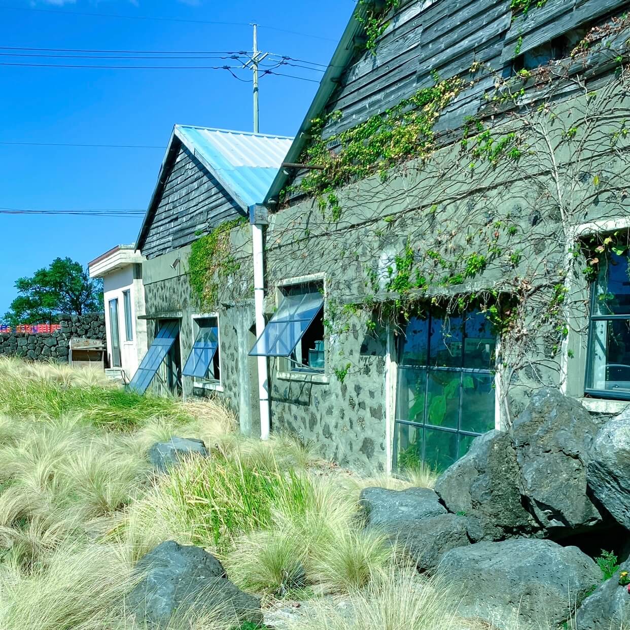 낡은 정미소를 카페로 분위기를 바꿔서 오픈을 한 것 같아요 예전 정미로 사용할 때 이용했던 기구가 이제는 조형물처럼 보여서 차가운 분위기 같지만 곳곳에 자리를 잡은 식물과 따뜻한 햇살이 비춰주어서 차가운 분위기의 경계를 허물어 주는 것 같아요, 다른 표현을 하자면 정말 제주도 숲 속에서 커피를 마시는 느낌? 벽은 제주도 현무암도 있고 정글 같은 분위기에 인센스도 켜놓으셔서 그 향으로 묘한 기분이 들었습니다.