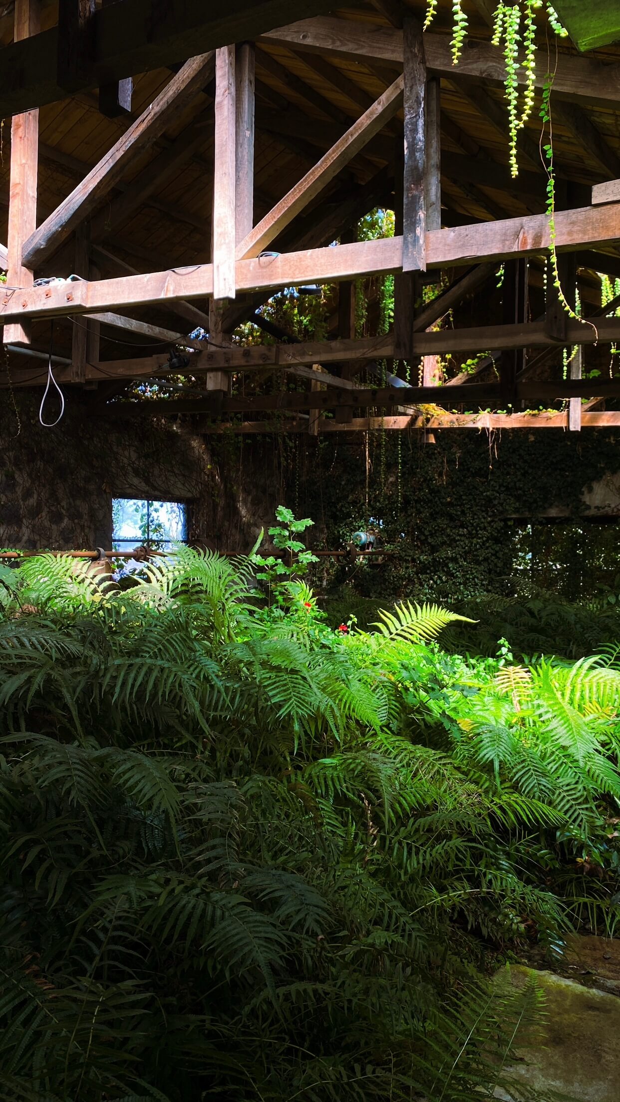 지금은 여행자가 많이 없는 계절이라 주문을 하고 천천히 음료를 마시면서 실내를 살펴보면 갤러리로 사용해도 좋을 듯한 분위기를 갖고 있는데 하나씩 보면 옛날에 사용한 낡은 기계도 보이고 창문 너머로 덩굴이 벽을 타고 올라가는 모습도 너무 자연스럽게 어울리고 있습니다.
