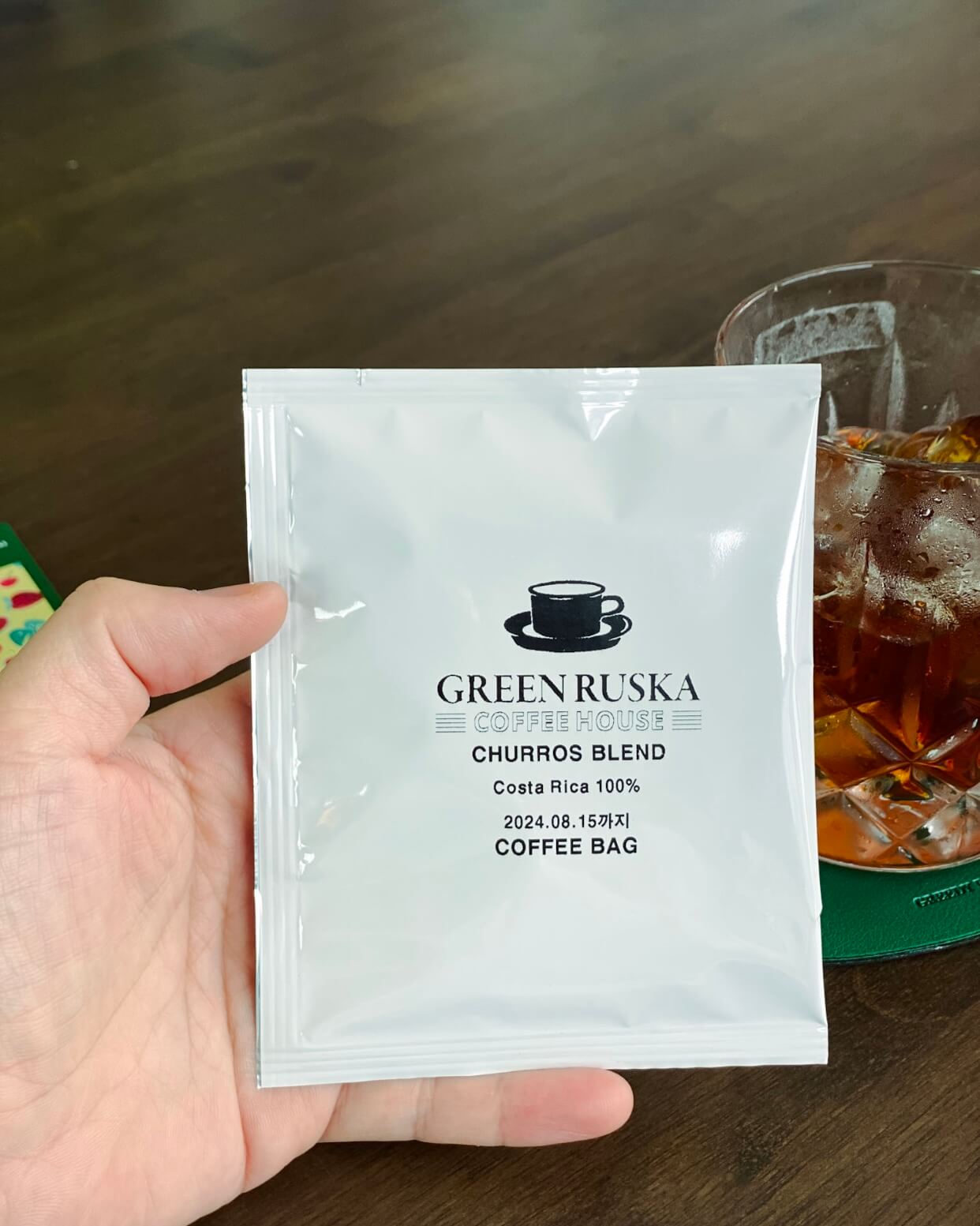 그린 루스카 커피를 한 모금을 마시면서 입에서 일반적인 커피의 맛이 아닌 다른 맛이 올라와 신기했습니다.